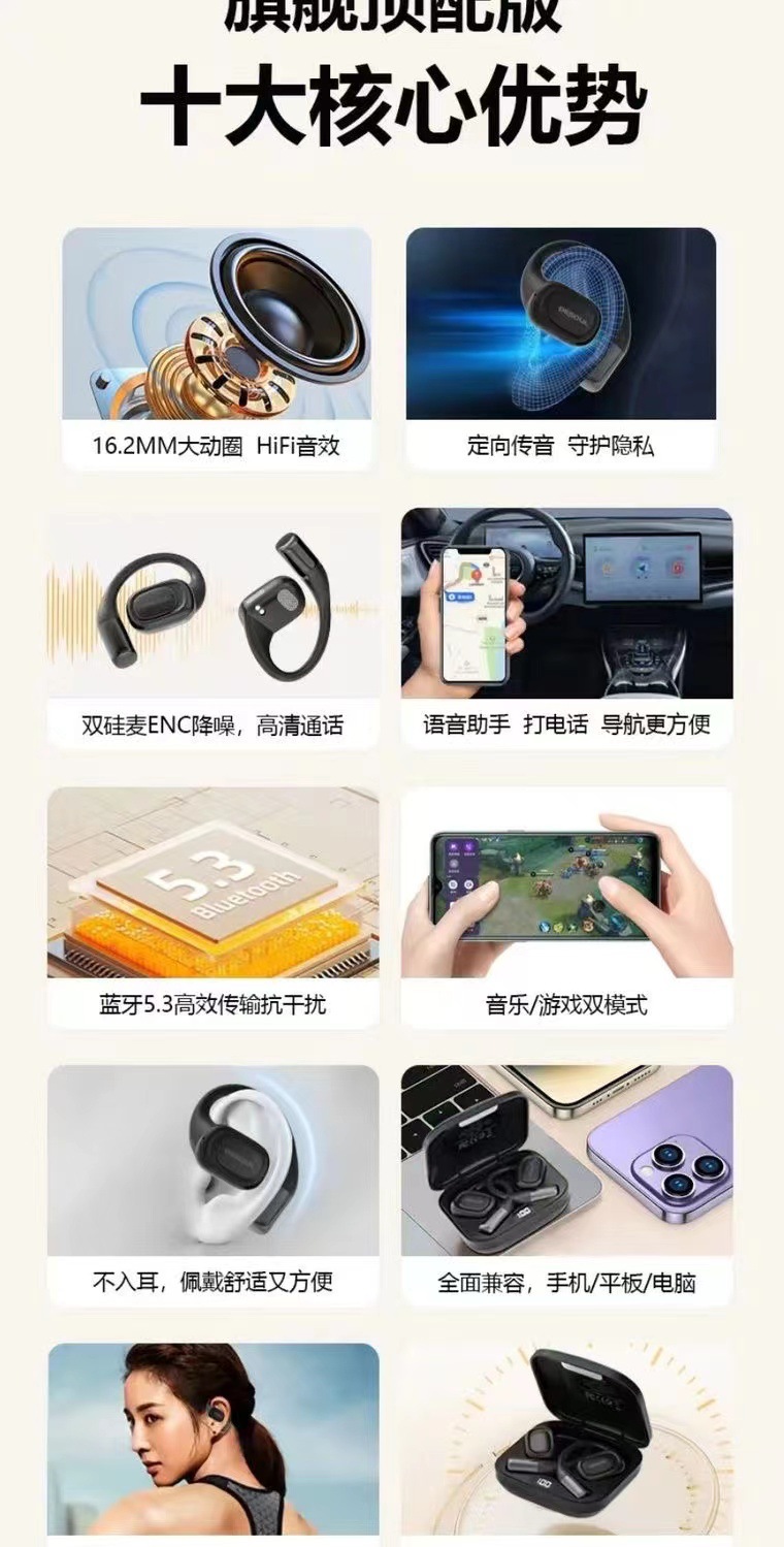 2024TWS掛耳式OWS新款藍牙耳機超長續航大電量HIFI音質運動款