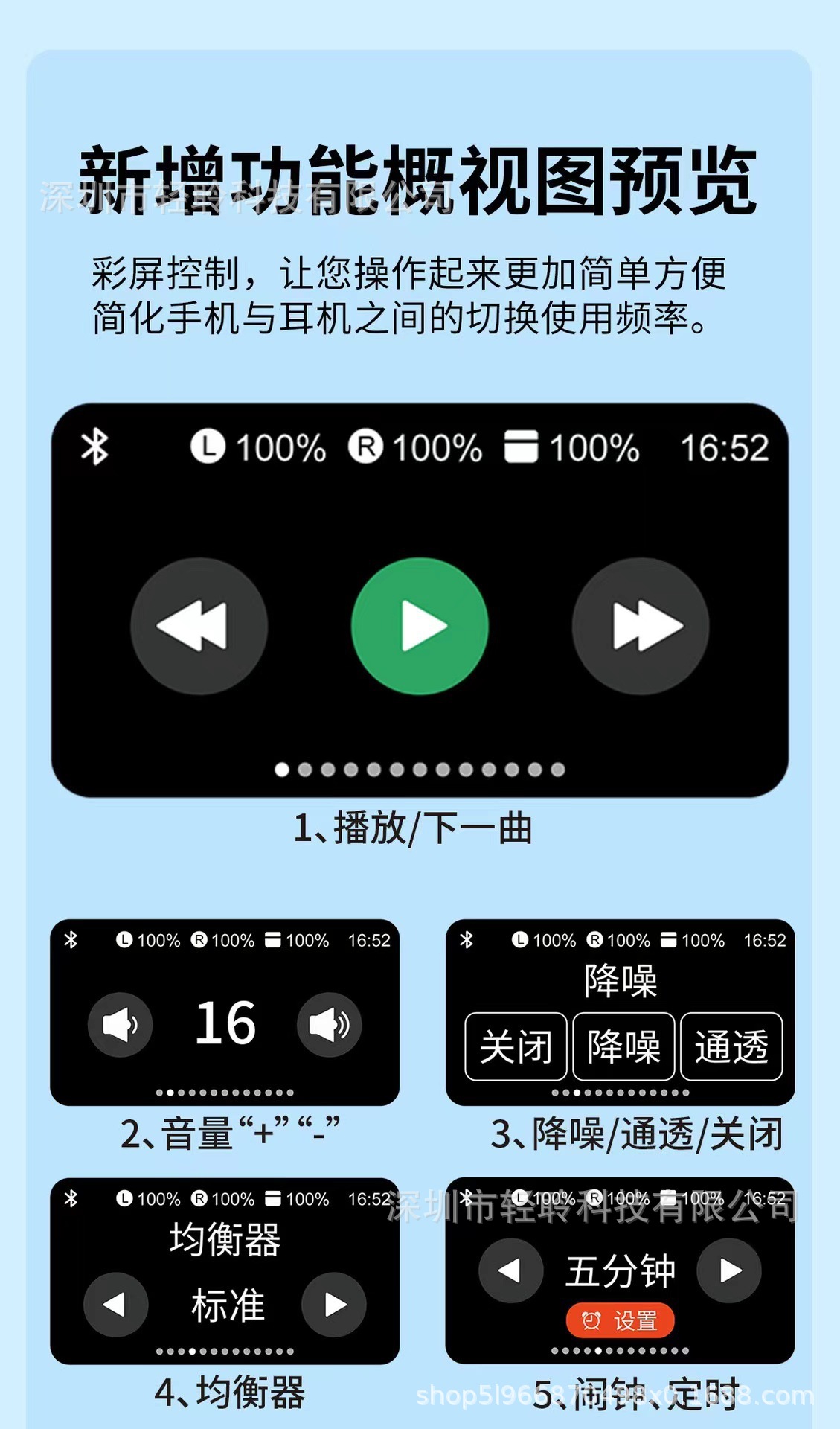 新款帶屏ANC主動降噪藍牙耳機彩色螢幕數顯TWS智能觸控螢幕多功能超長續航