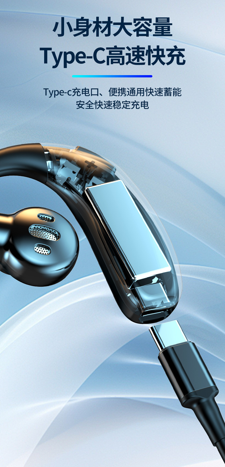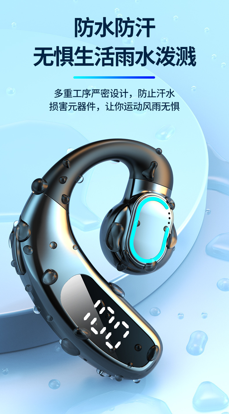 新品無線藍牙耳機F80掛耳式不入耳商務氣傳導單耳帶數顯