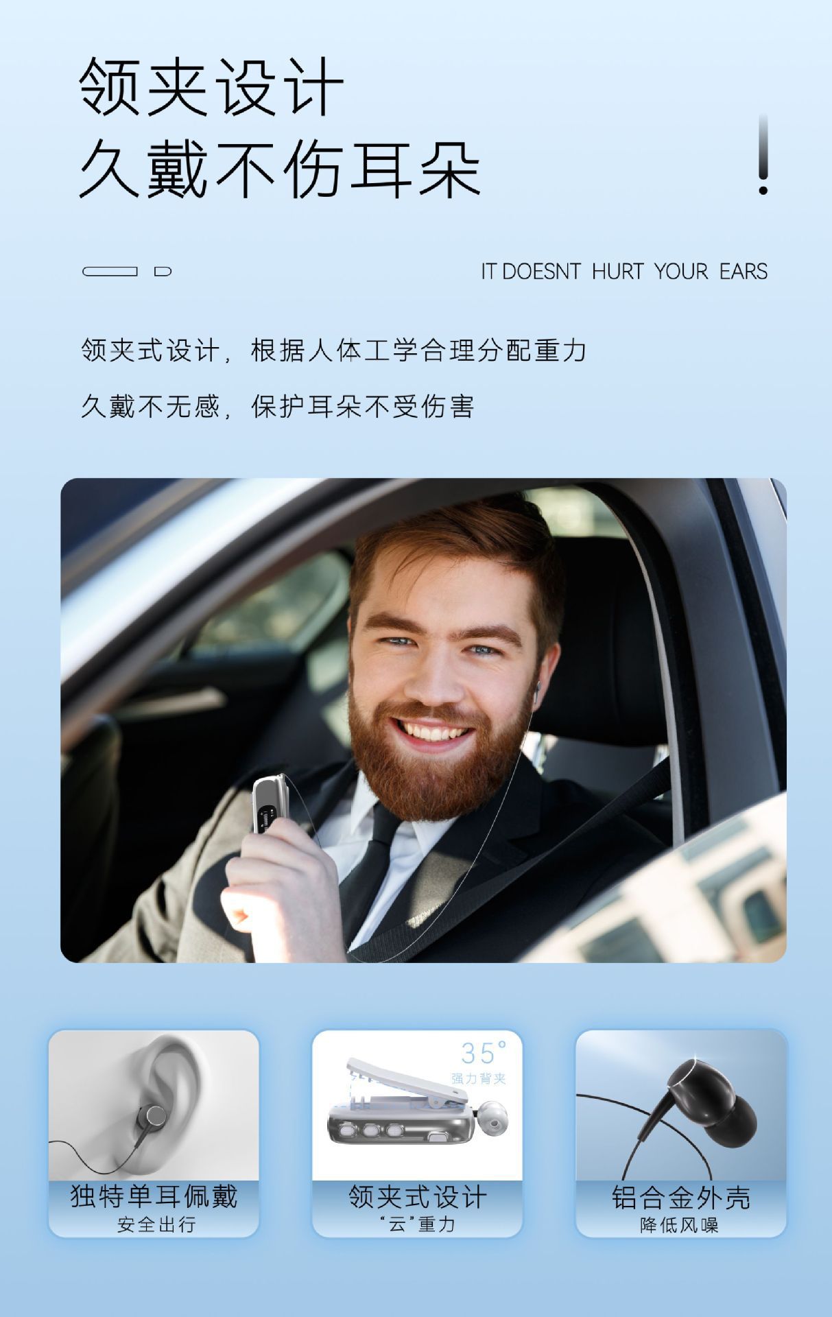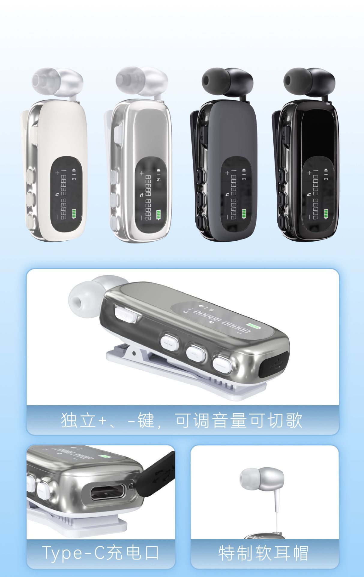 新款K75商務領夾式藍牙耳機可伸縮無線LCD數字顯示超長續航