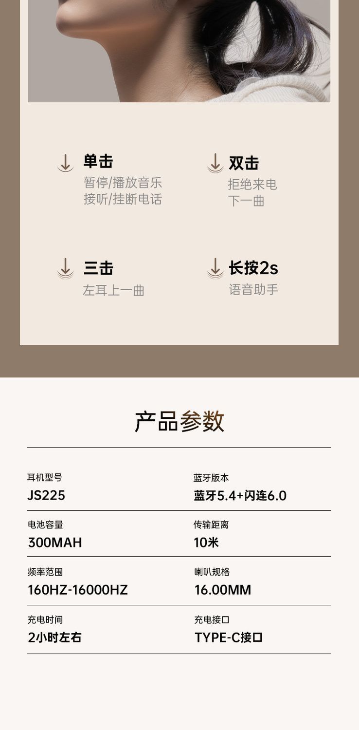 SJ225掛耳式傳導無線藍牙耳機x1個