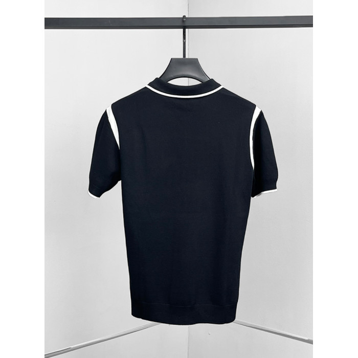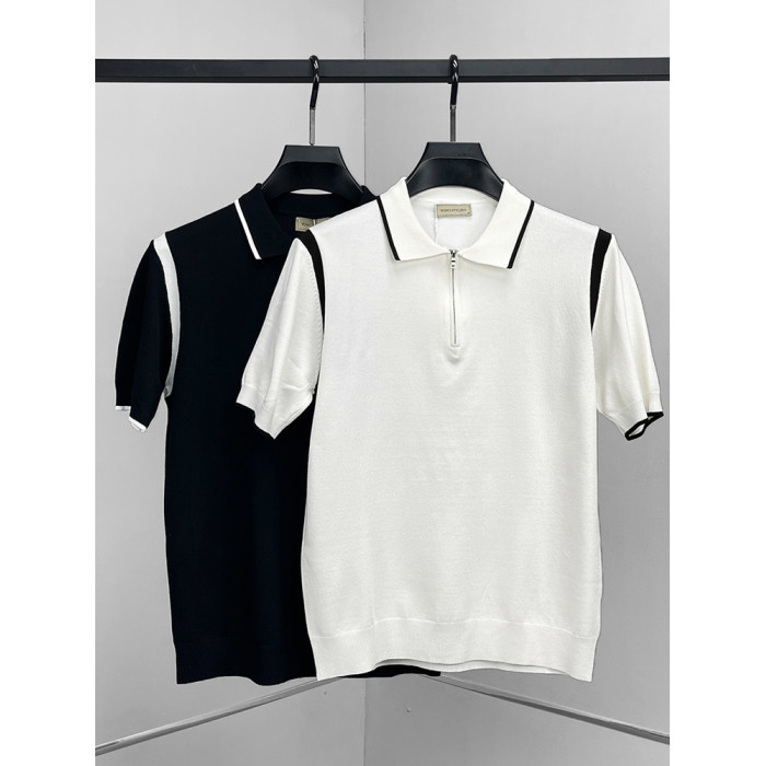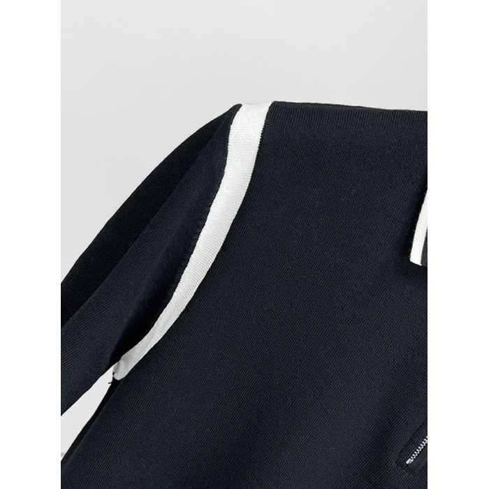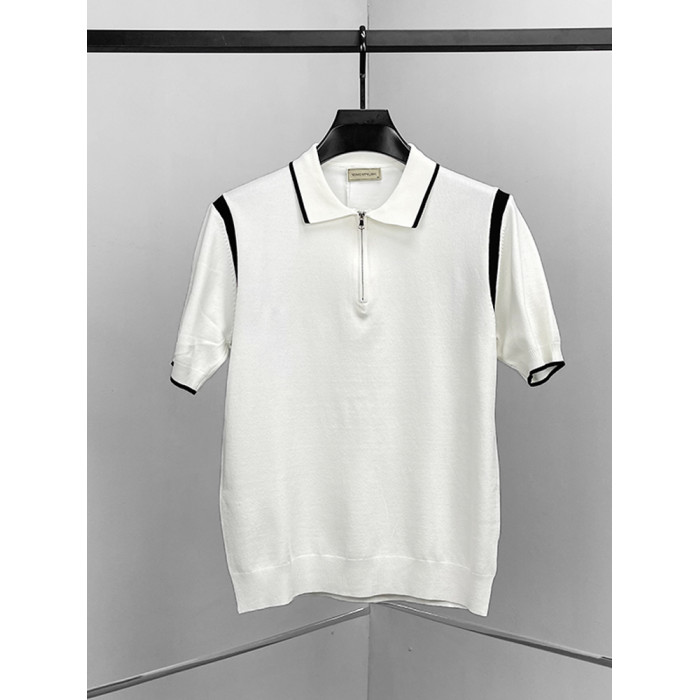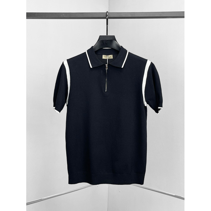 春秋季新款男士翻領短袖針織衫韓版修身半拉鍊休閒百搭毛衣打底衫