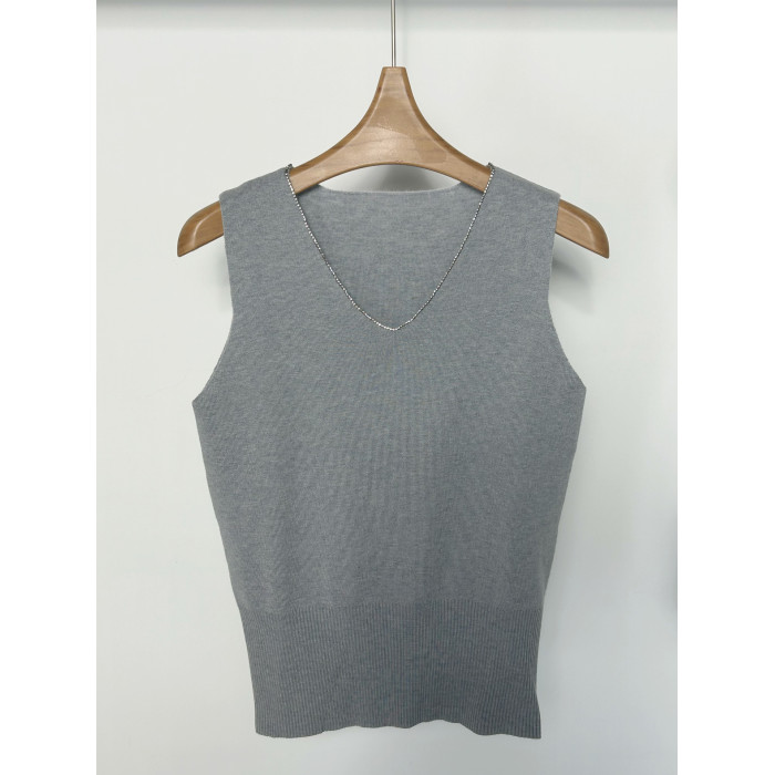 羊毛針織背心女2025早秋新款套頭V領高級感鑽飾內搭打底衫上衣