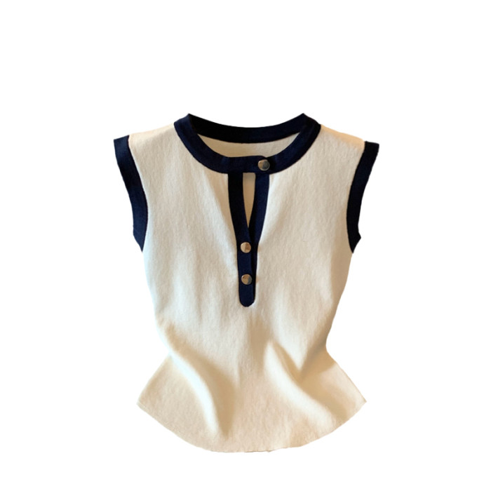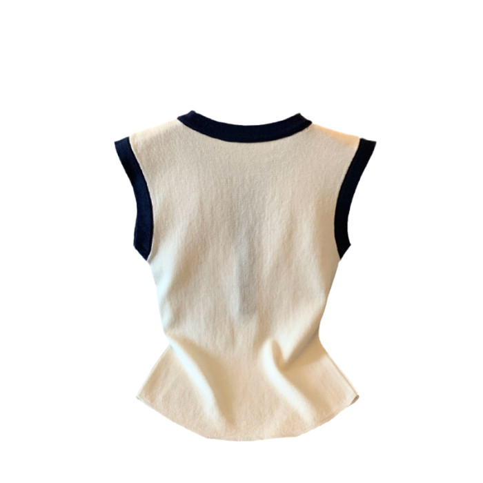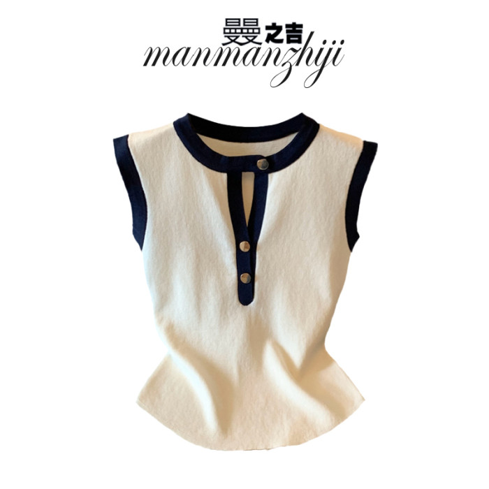 2025夏季韓版時尚百搭顯瘦拼接修身顯瘦無袖針織衫女打底衫上衣潮