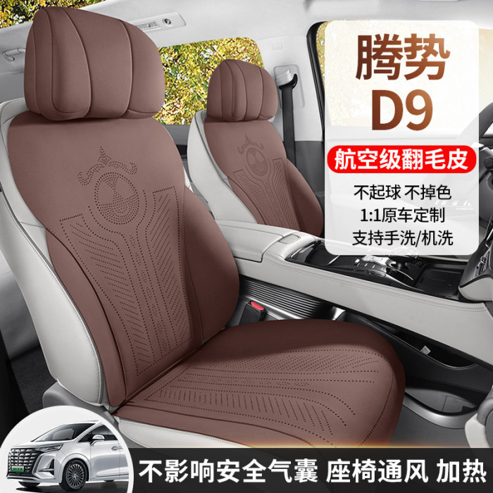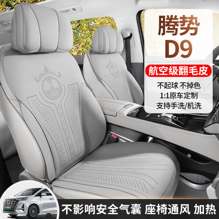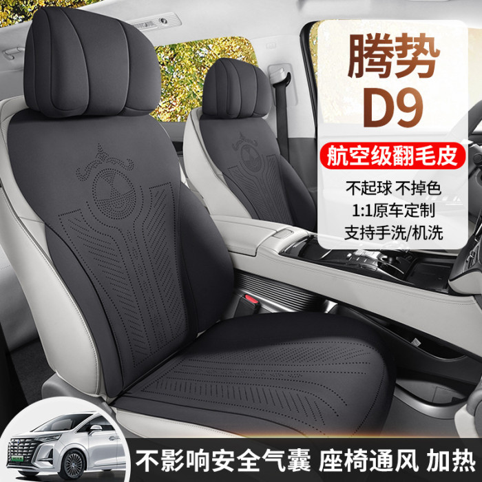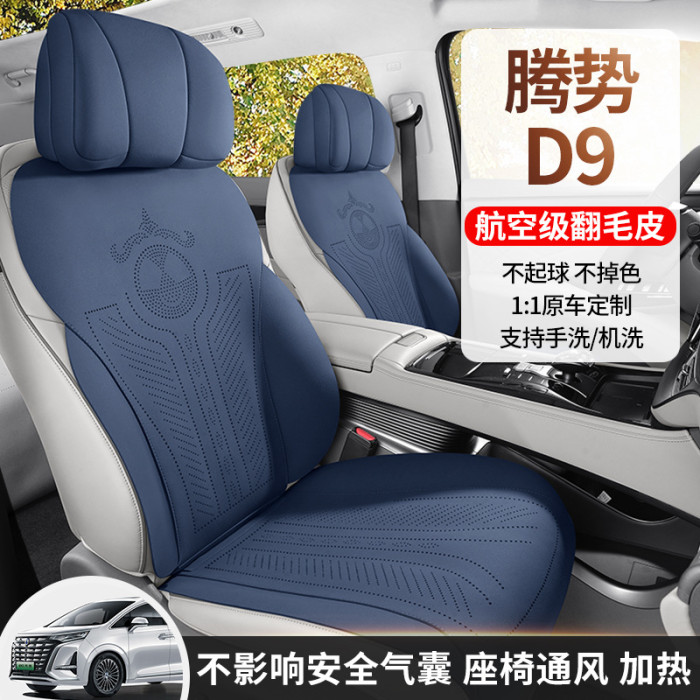 適用於騰勢D9專用汽車坐墊輕奢馬鞍墊翻毛皮半包座椅套座墊
