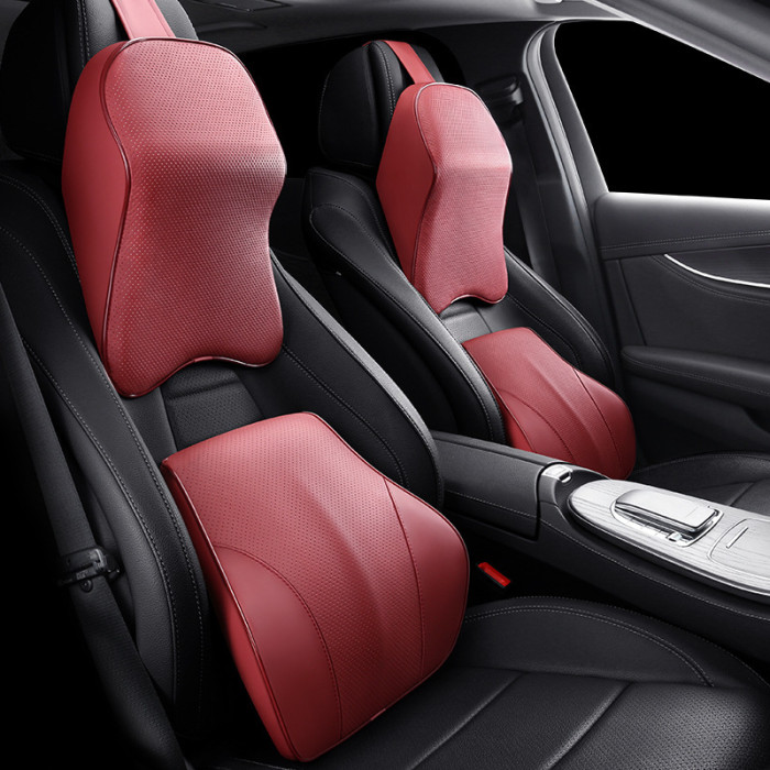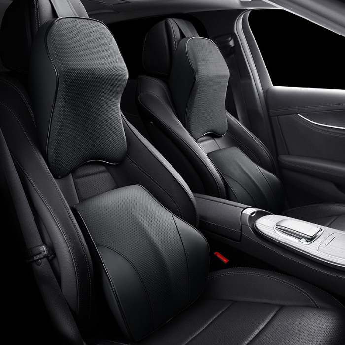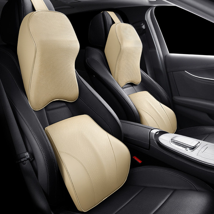 汽車頭枕護頸枕靠枕四季通用記憶棉車用靠背墊汽車腰靠全皮大頭枕
