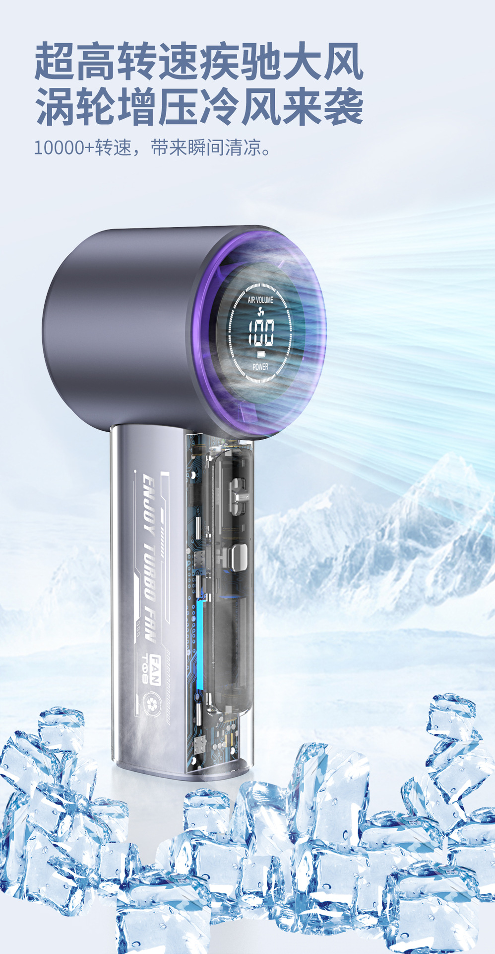 爆品T17透甲款手持小風扇高清LED屏顯暴力風扇usb可攜式風扇
