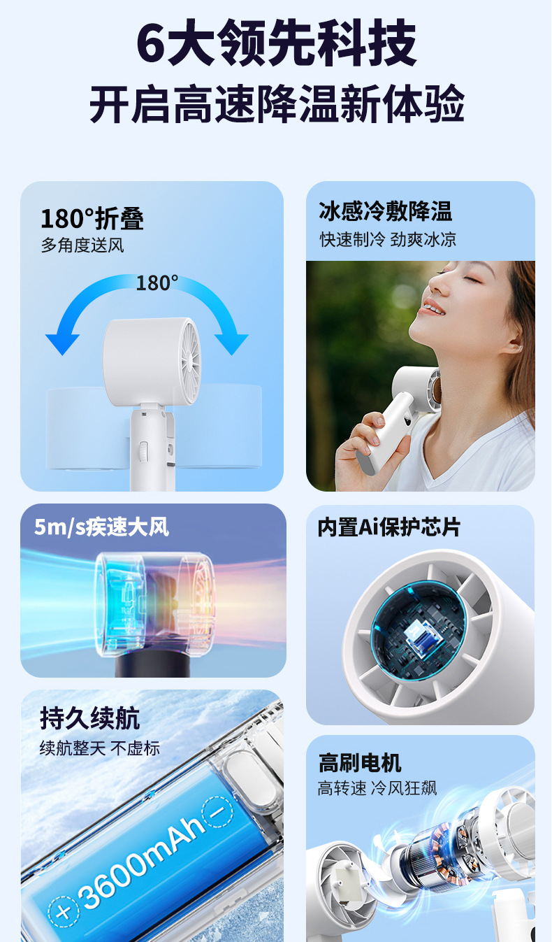 新款高速製冷冰感風扇手持風扇戶外可攜式冰敷USB風扇桌面小風扇