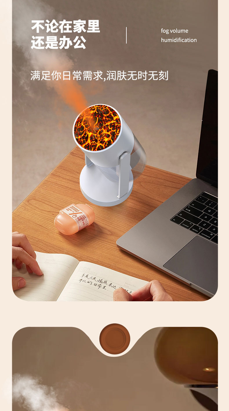 新款火山搖頭加溼器仿真火焰七彩氛圍燈大霧量車用霧化加溼器