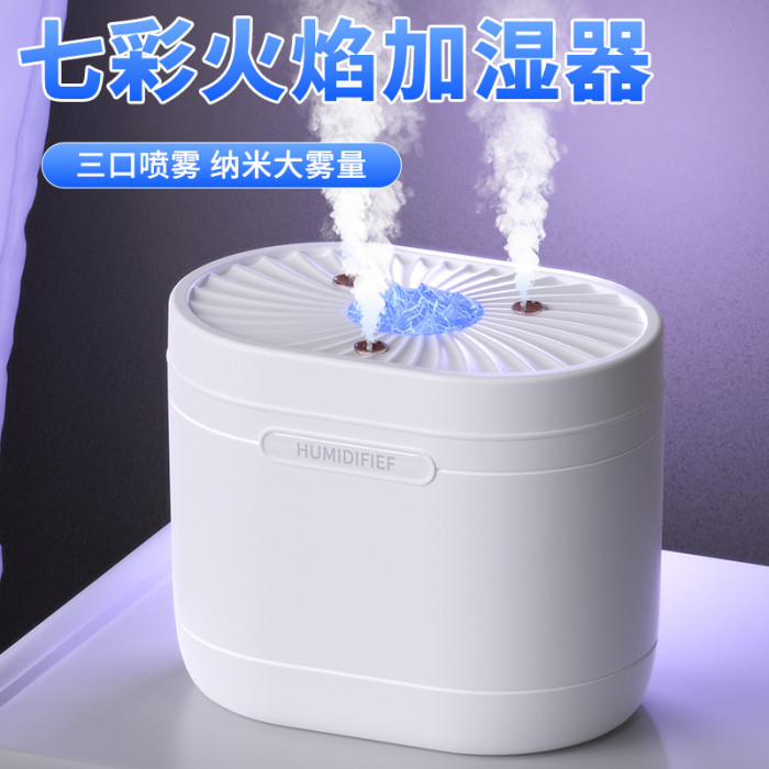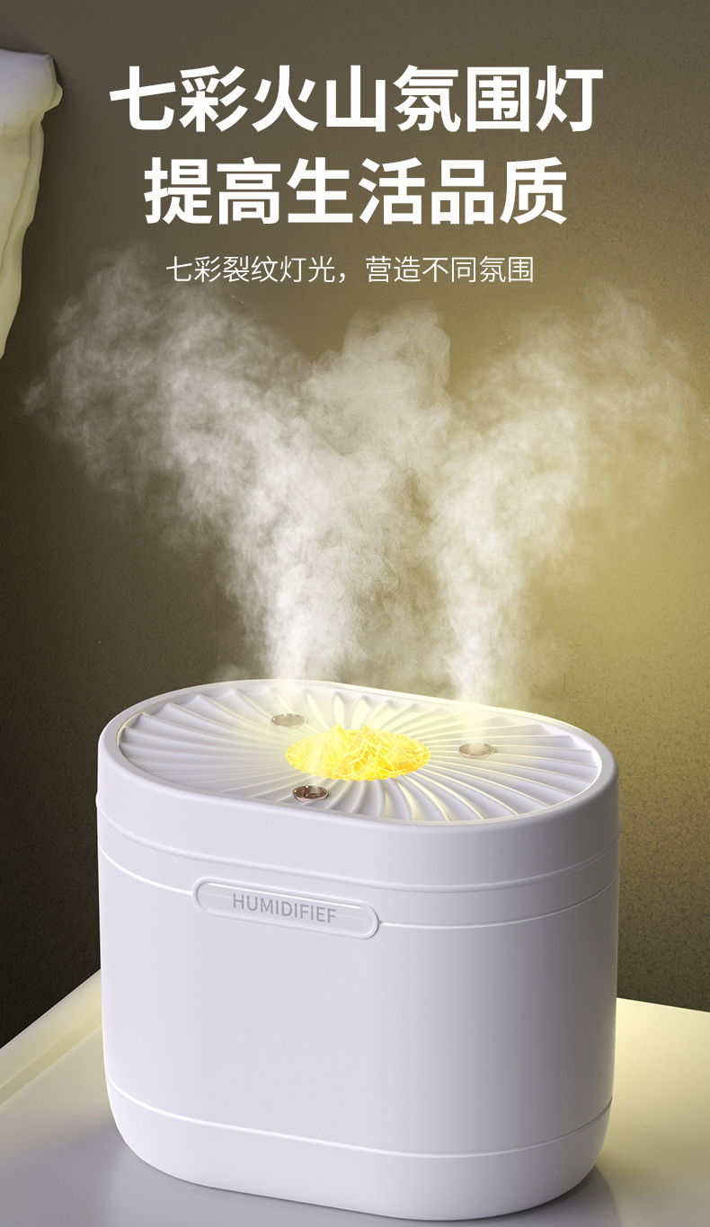 新款創意三噴火山香薰機大容量迷你加溼器家用桌面七彩火焰加溼器
