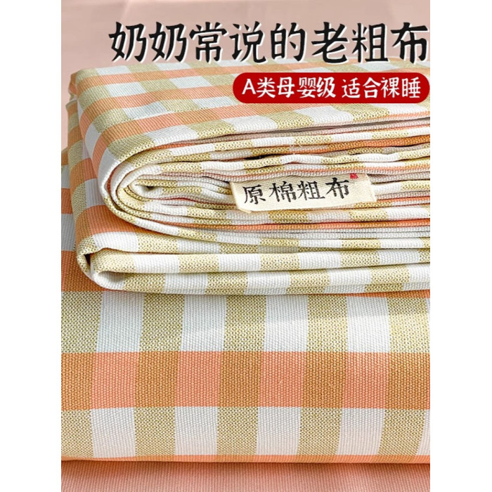 A類母嬰級老粗布格子床單單件純棉加厚老式被單枕套三件套100全棉