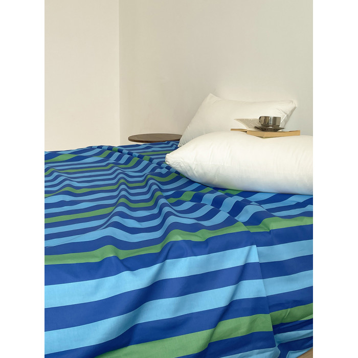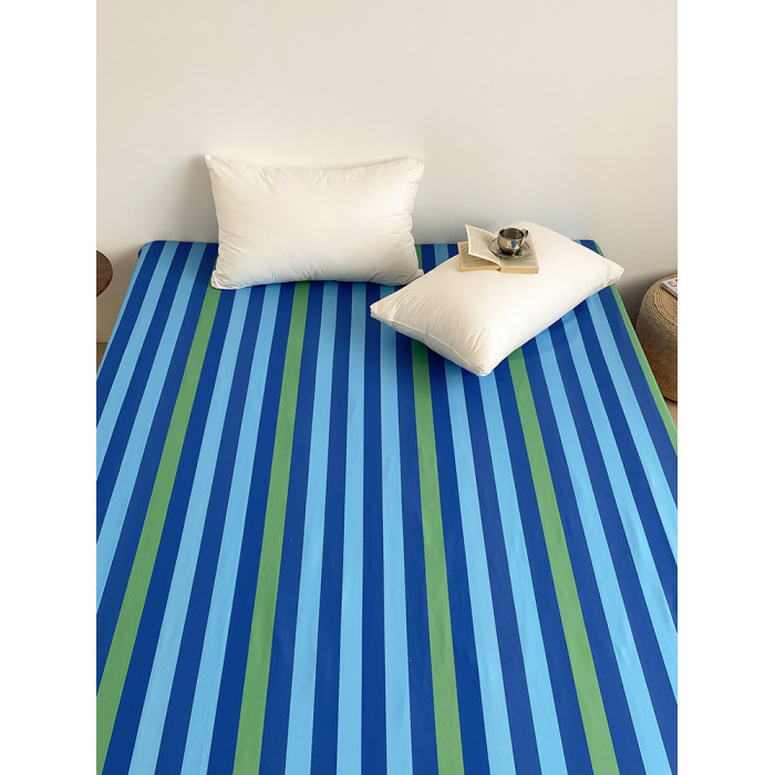 半島森林 經典撞色條紋全棉1米5藍色床單床笠單件100純棉時尚藝術