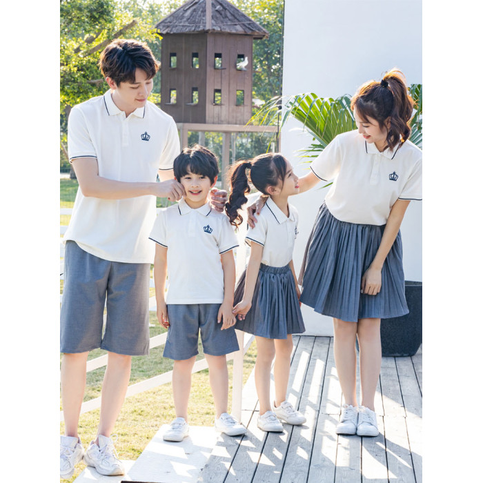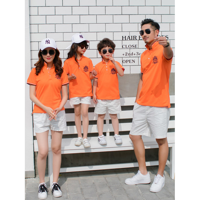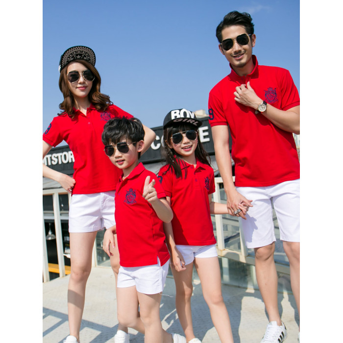 親子裝夏裝2025新款潮一家三口四口紅色polo短袖T恤母女款母子裝
