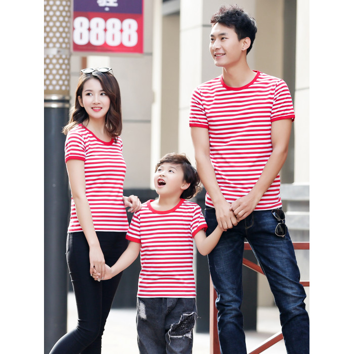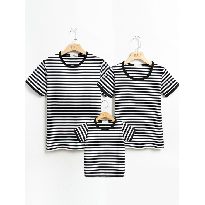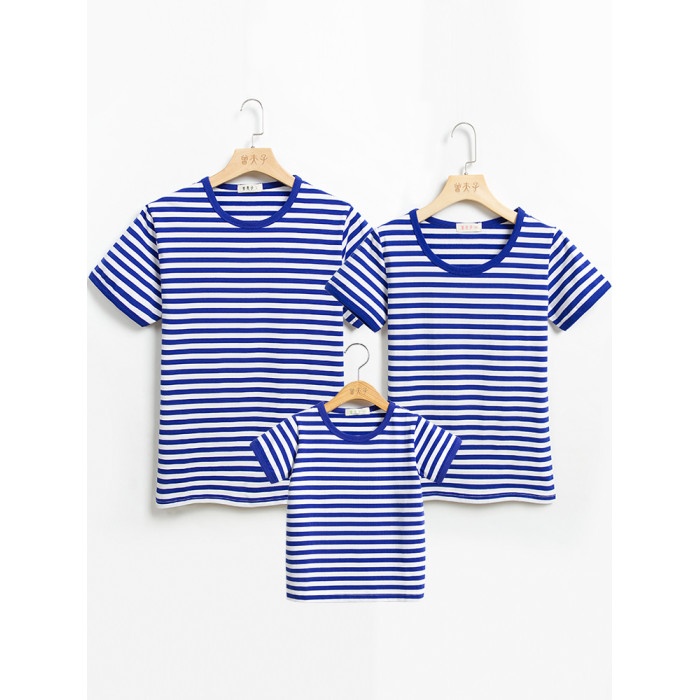 夏裝親子裝一家三口四口2025新款春 海魂衫母女母子條紋短袖t恤