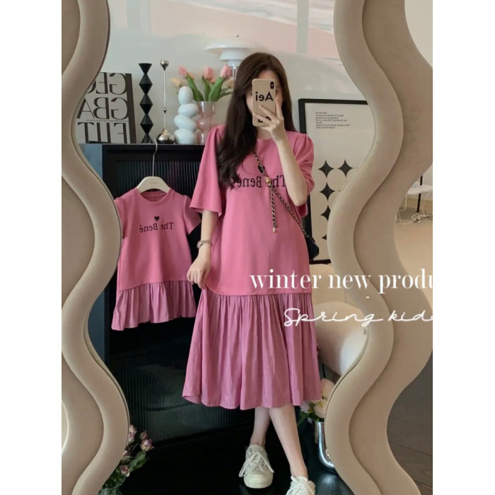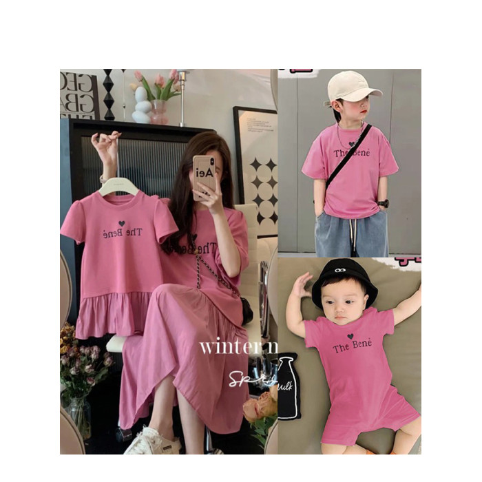 玫粉色親子裝夏款嬰兒t恤一家三口四口男女寶母女裝短袖連衣裙潮