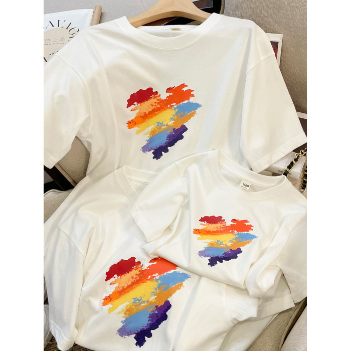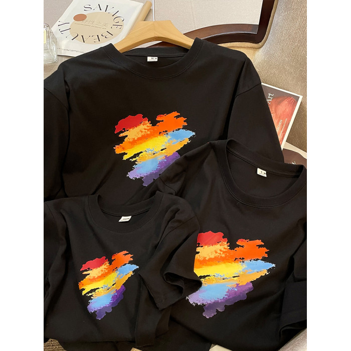 親子裝夏一家三口母女2025新款潮母子裝四口高級夏季純棉t恤套裝