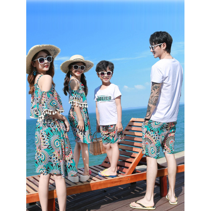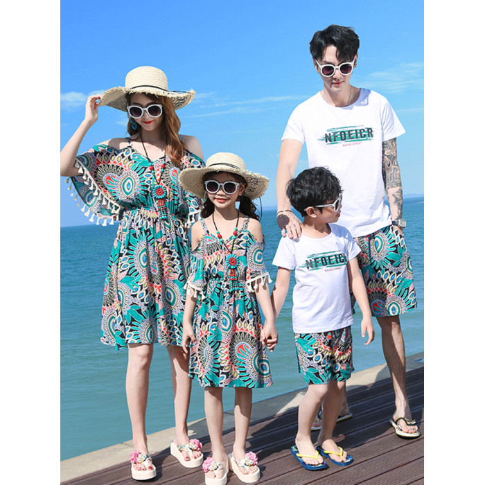 親子裝夏裝2025新款海邊度假一家三口四口母女裝夏季沙灘連衣裙子