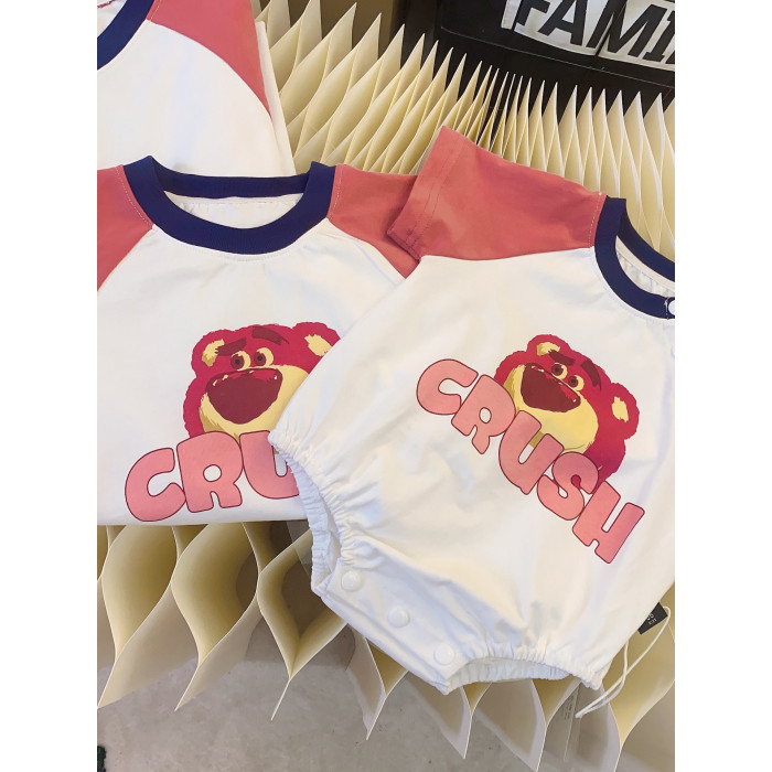 炸街親子裝一家三口夏季短袖2025新款嬰兒爬服母子母女純棉t恤潮