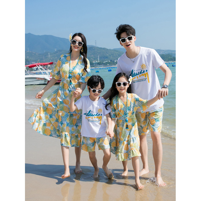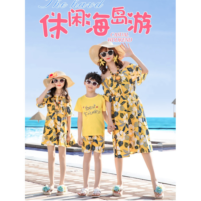 親子裝情侶裝泰國巴厘島三亞旅遊度假海邊沙灘套裝母女連衣裙長裙