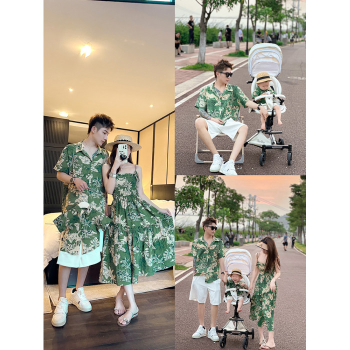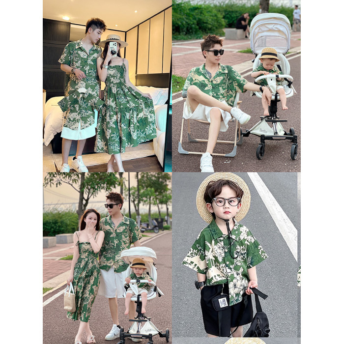 炸街親子裝一家三口夏裝新款母子裝母女裝海邊港風花連衣裙襯衫潮