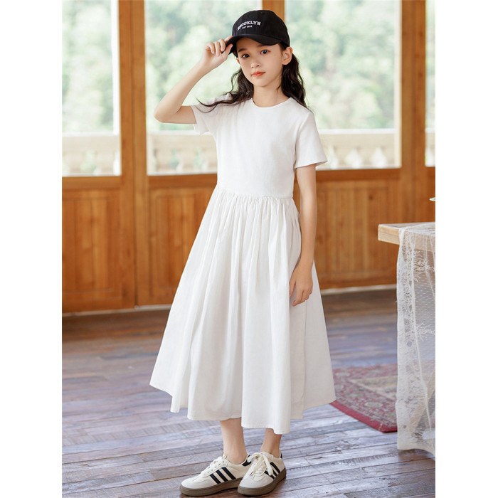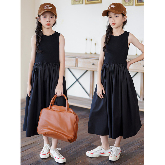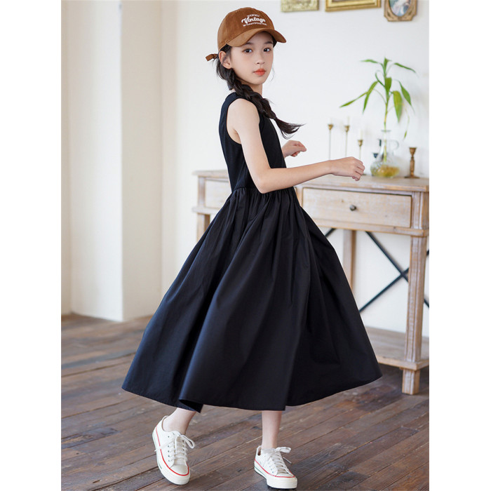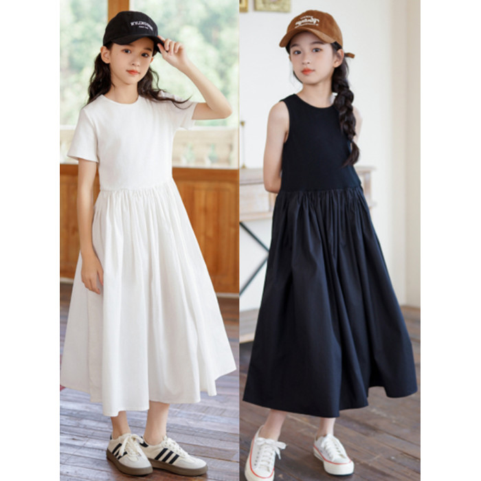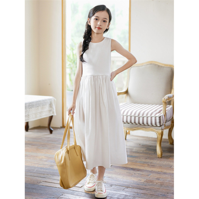 女童連衣裙夏裝2025新款兒童白色公主裙中大童親子裝度假背心長裙