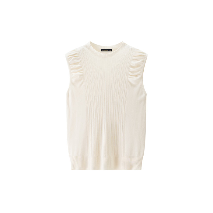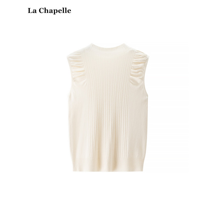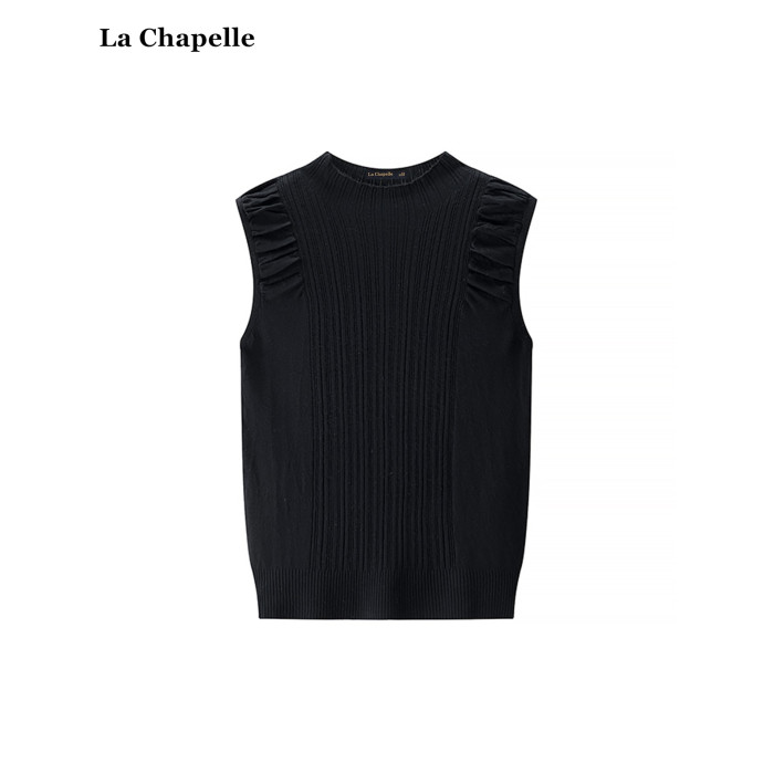 拉夏貝爾/La Chapelle半高領褶皺針織背心女設計感修身打底衫上衣