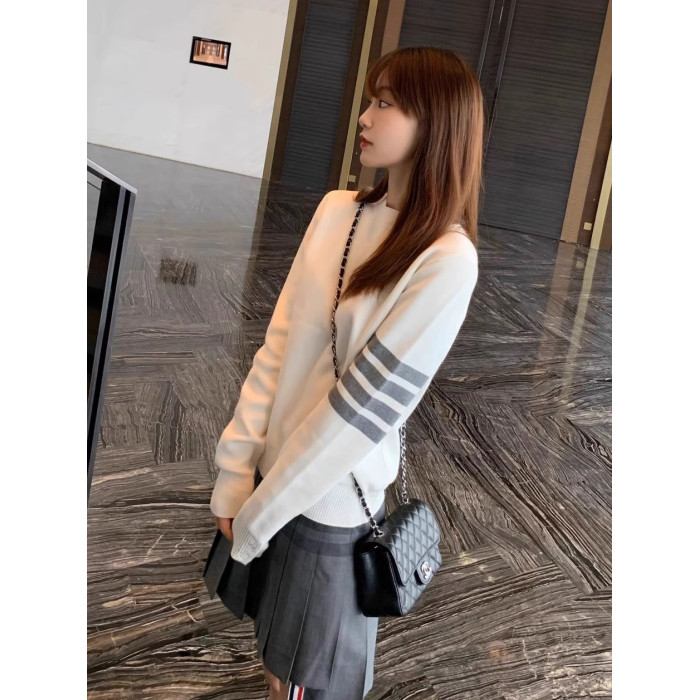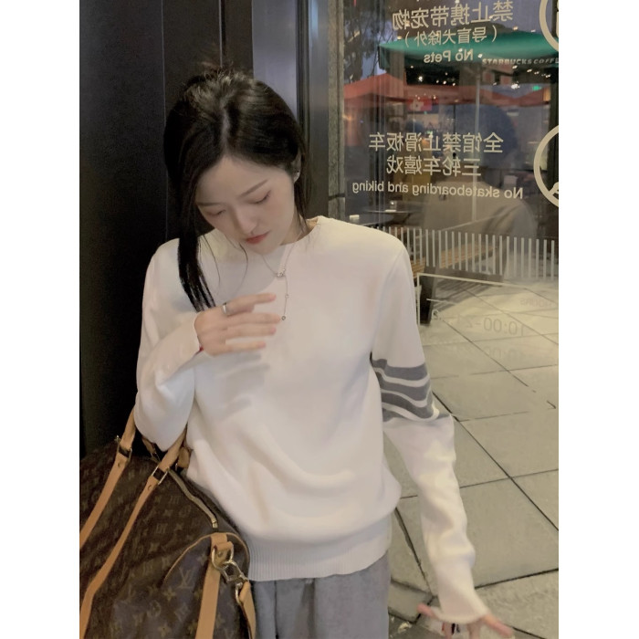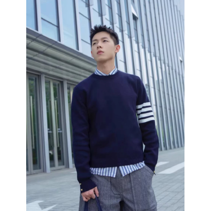 TB四杠純棉套頭毛衣圓領針織衫情侶款ins學院風祖馬龍長袖打底衫