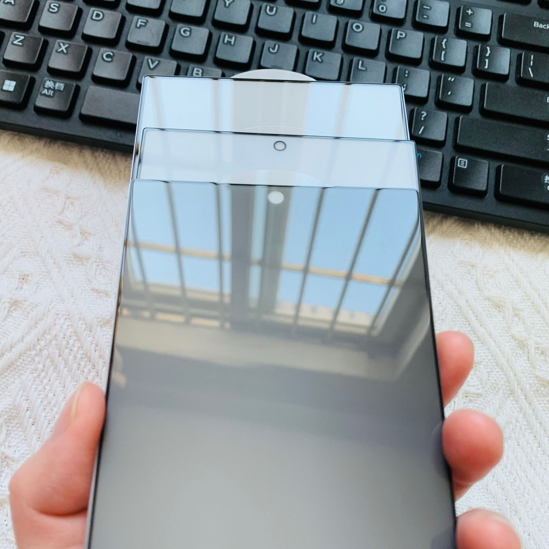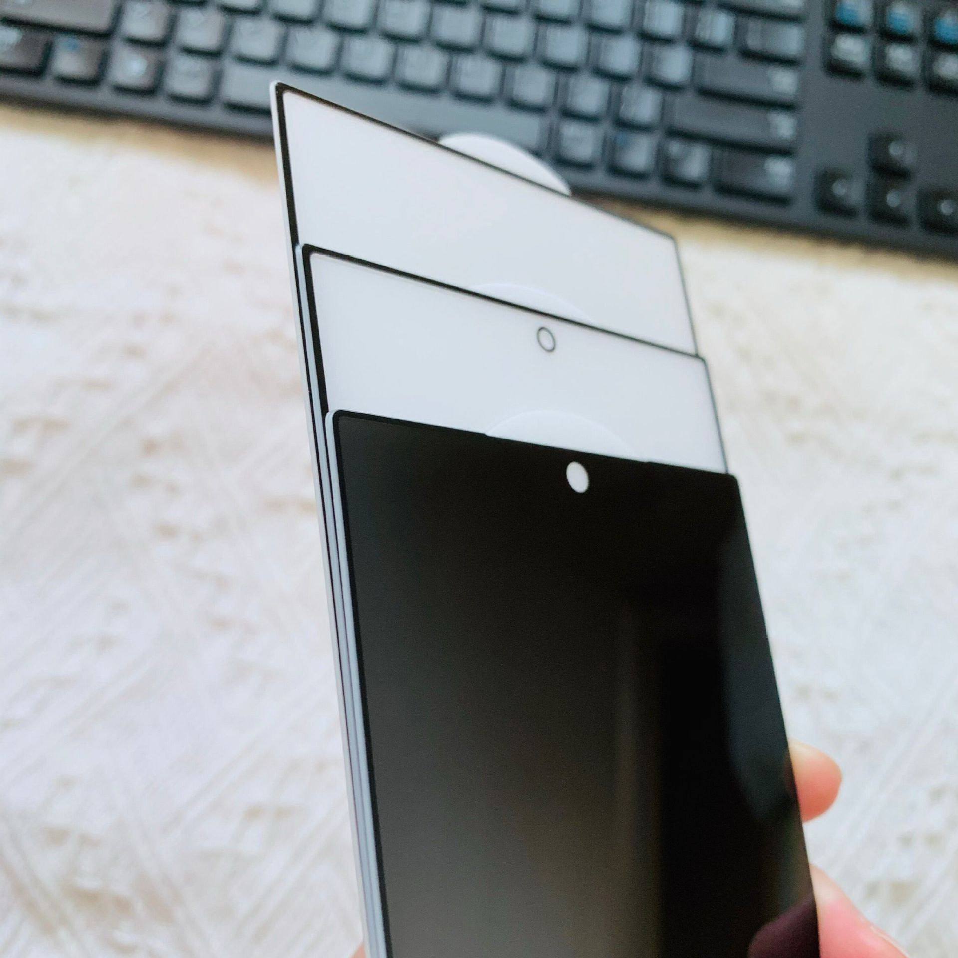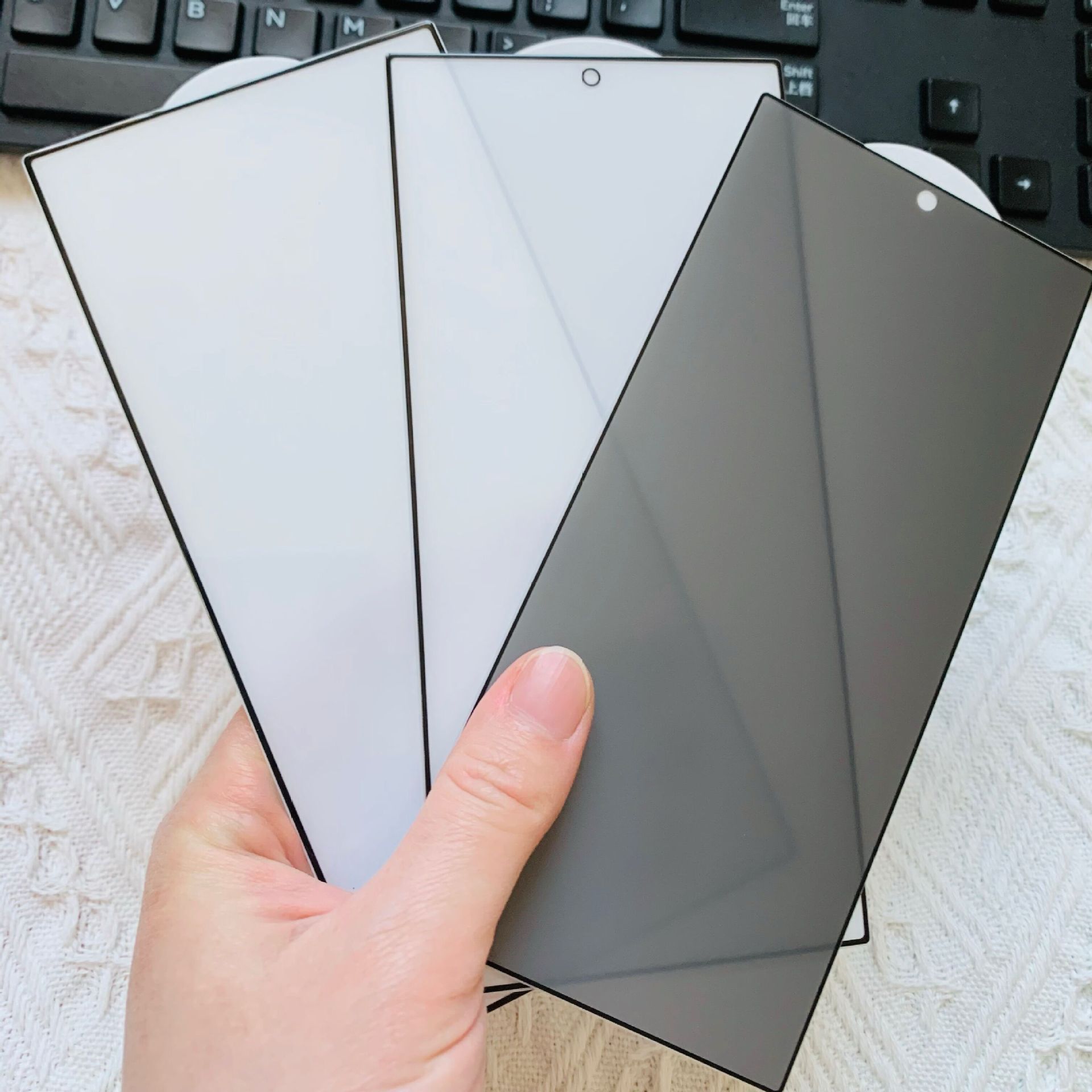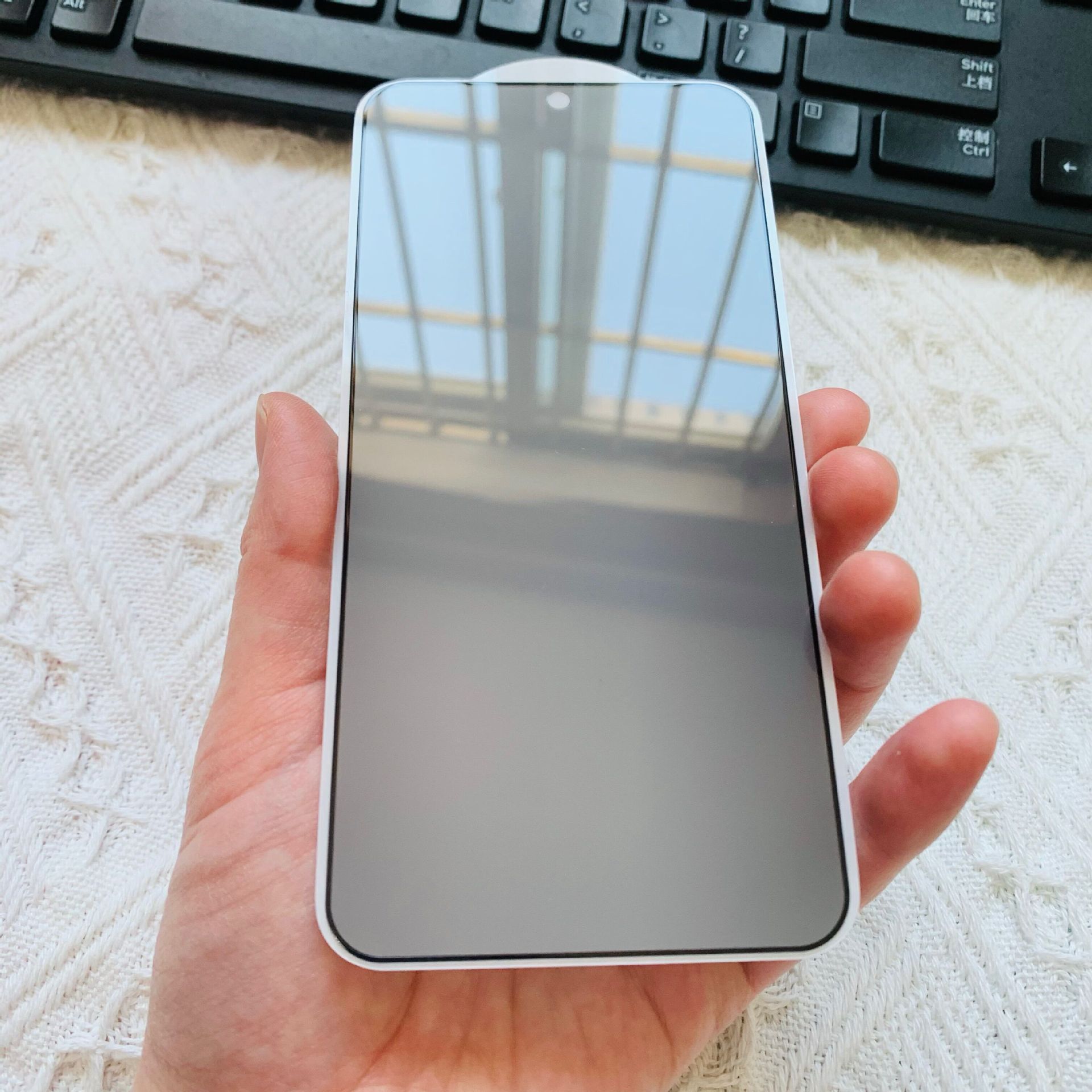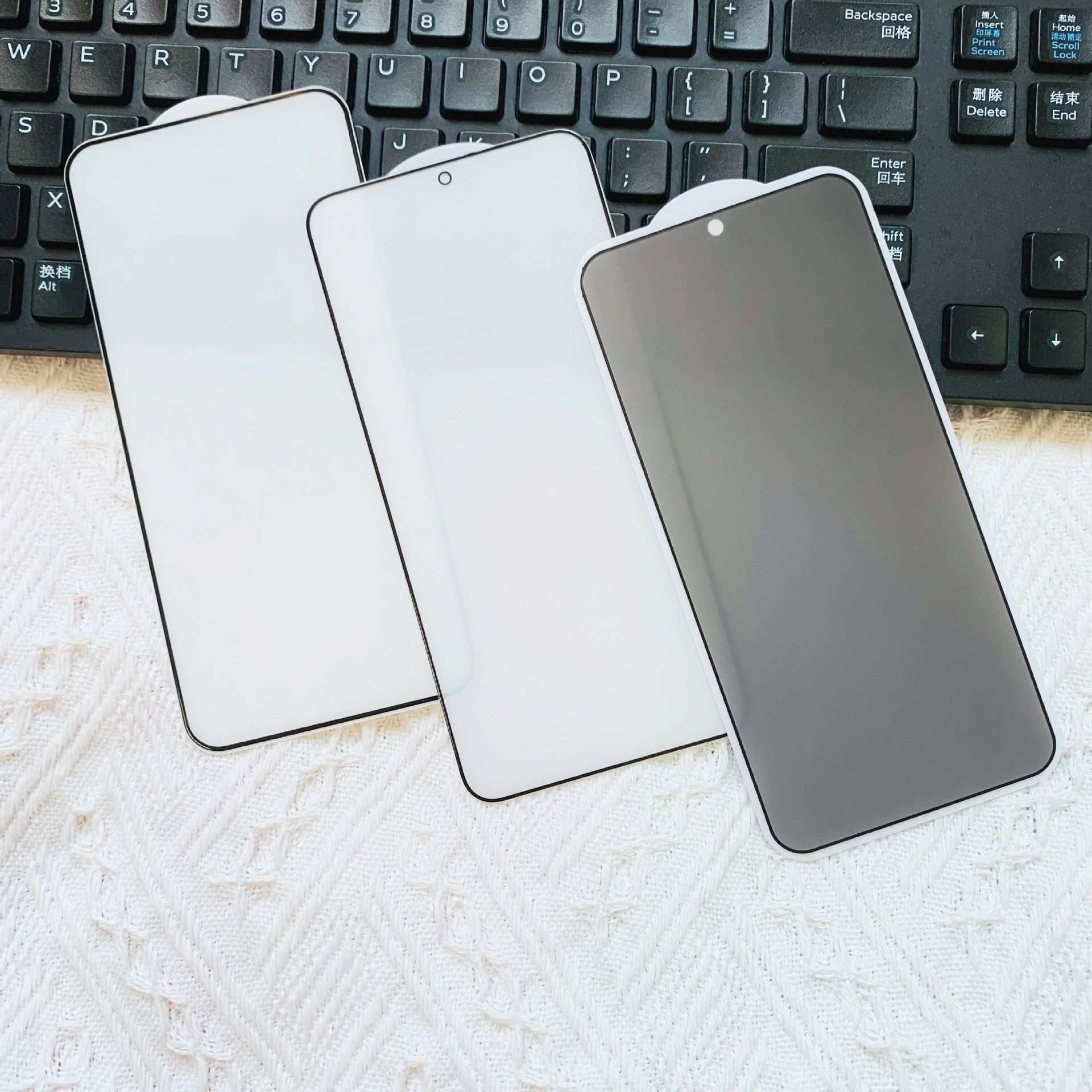 磨砂防窺【絲印全屏0.2高鋁解鎖版帶底板】黑色裸膜