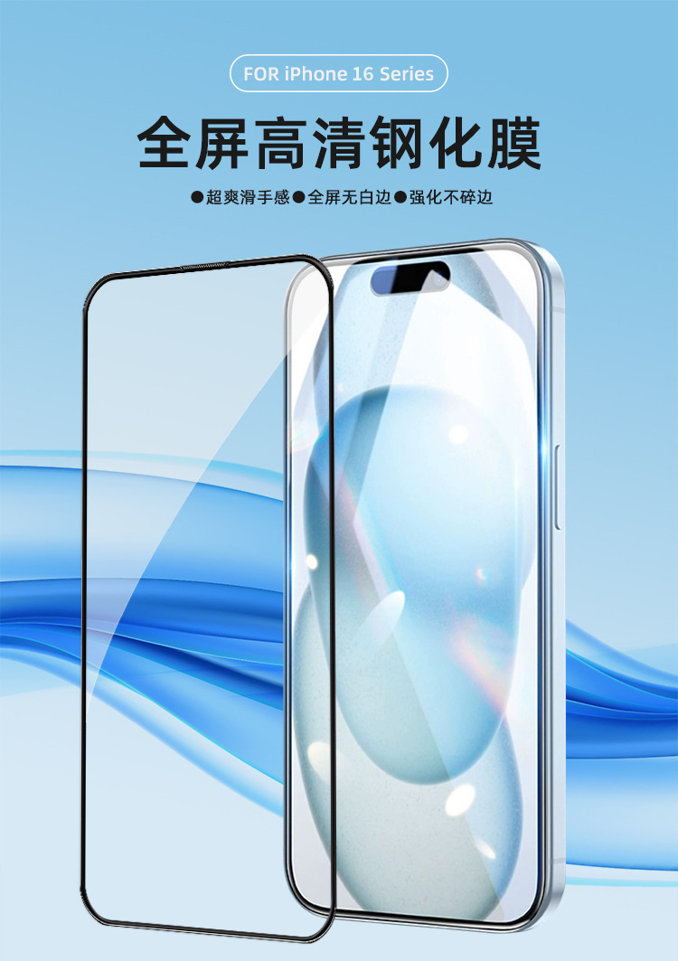 適用蘋果iPhone16全屏高清防摔大猩猩防窺鋼化膜防指紋手機膜