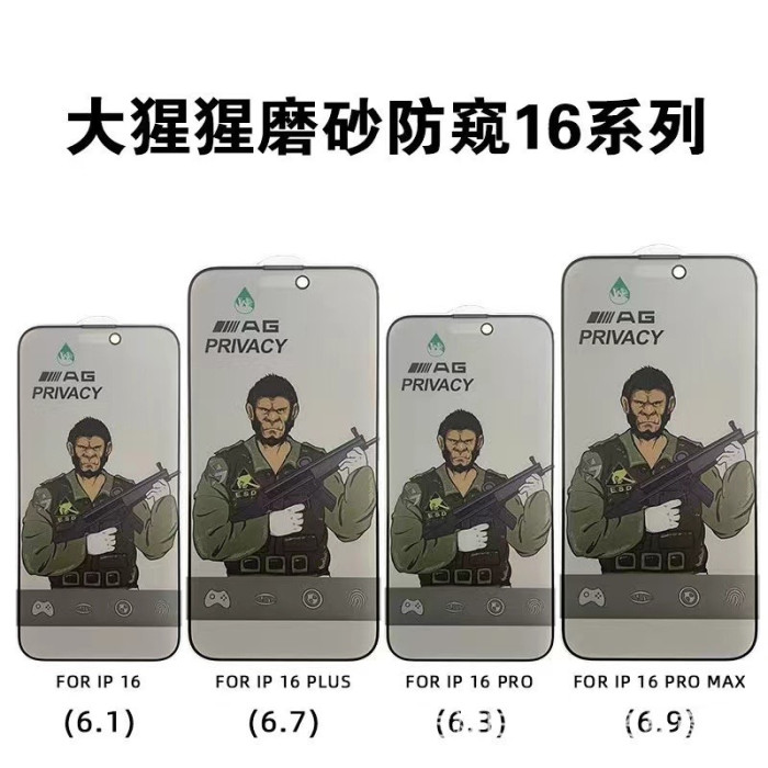 大猩猩鋼化膜蘋果16promax防窺iphone15磨砂防指紋14高清玻璃適用