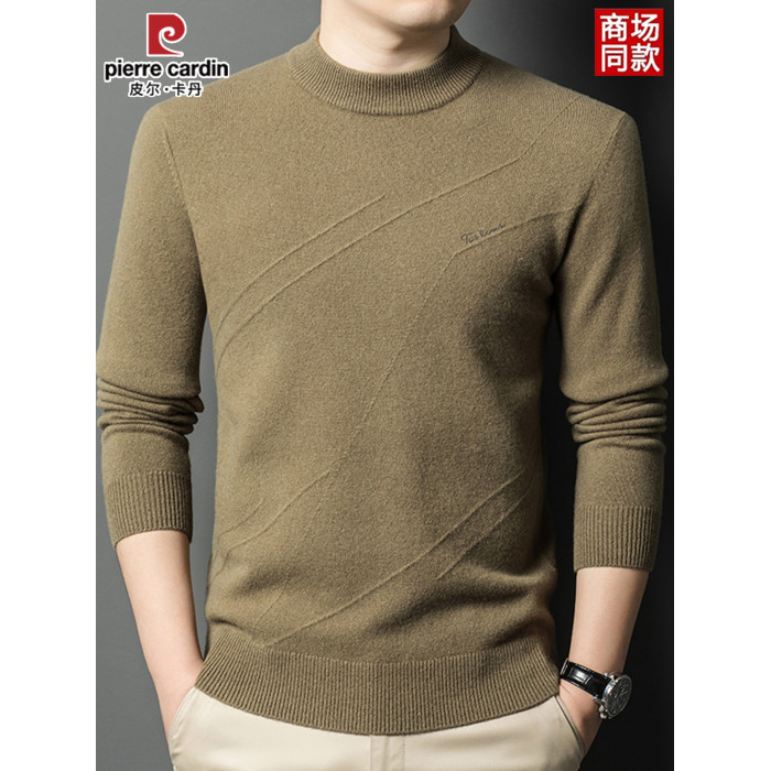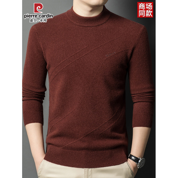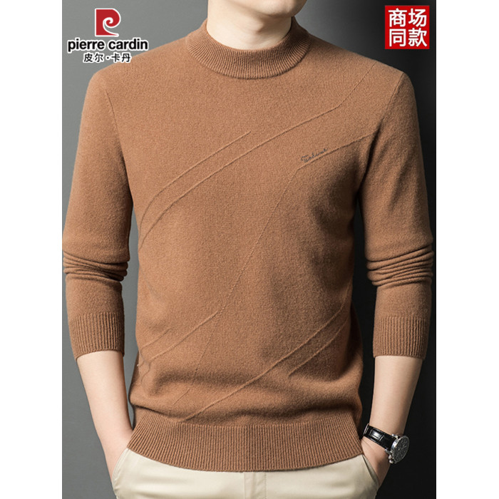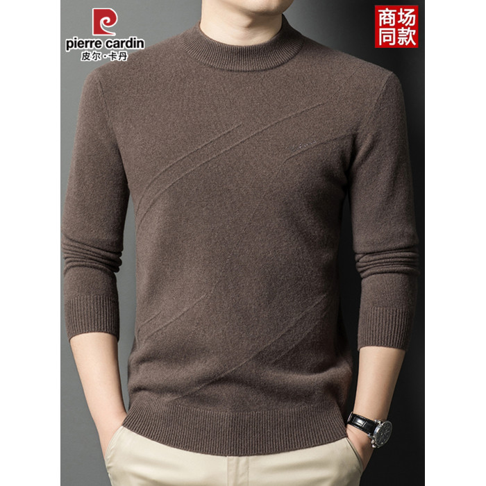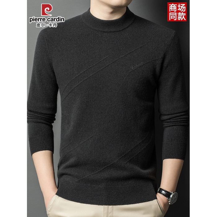 皮爾卡丹冬季男裝長袖純羊毛針織衫半高領線衣套頭加厚中年打底衫