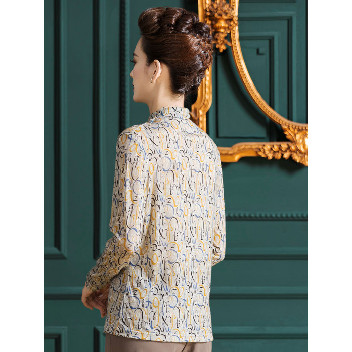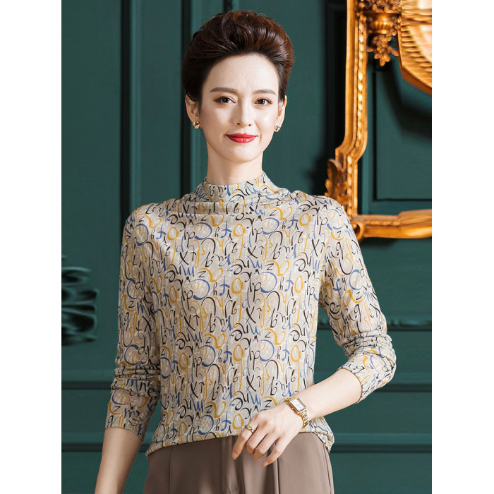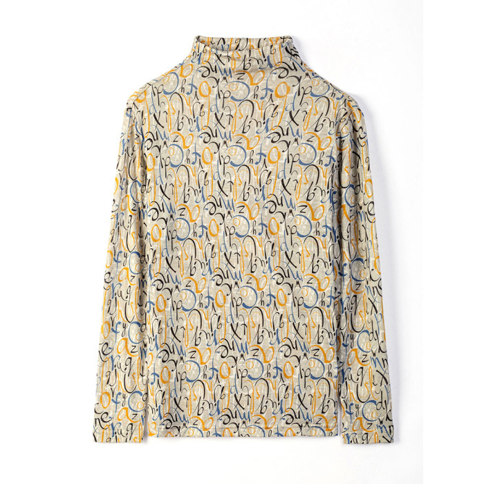 旺秋2025新款羊毛衫女100%純羊毛印花高領精紡超細薄款針織打底衫