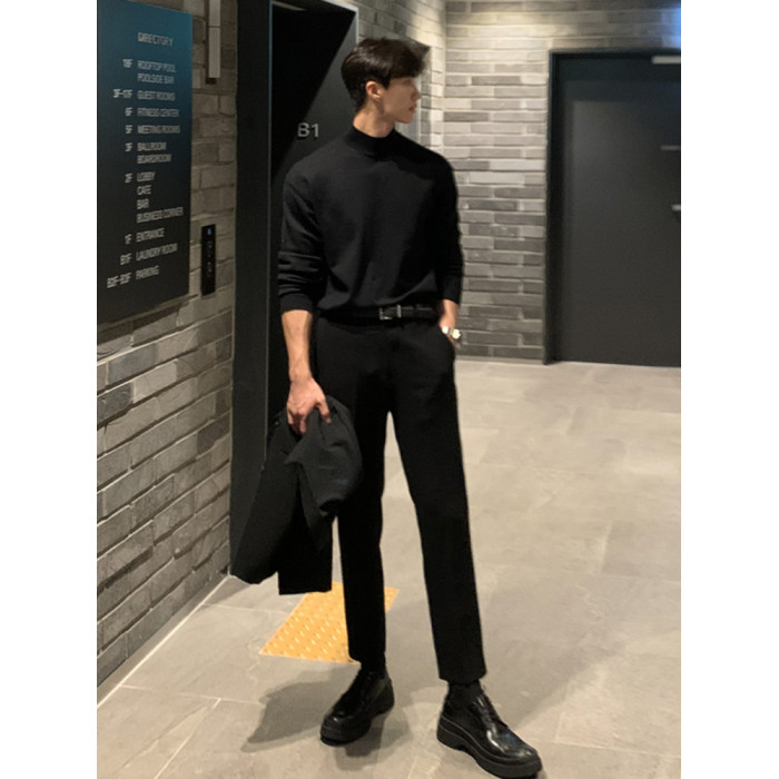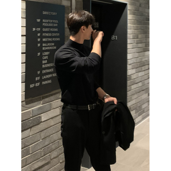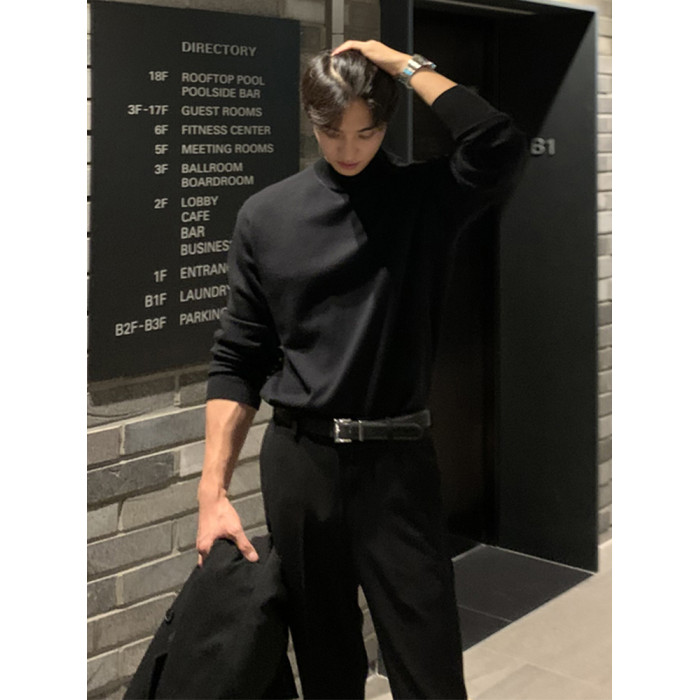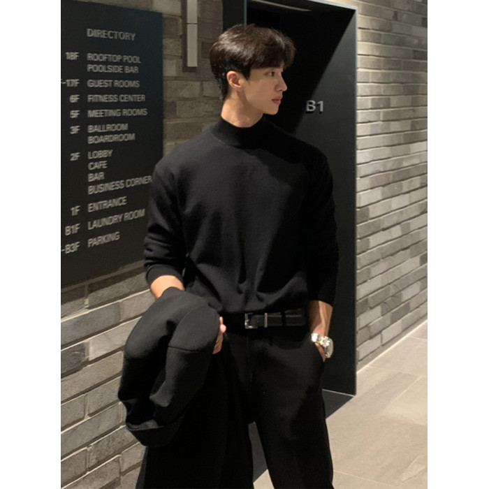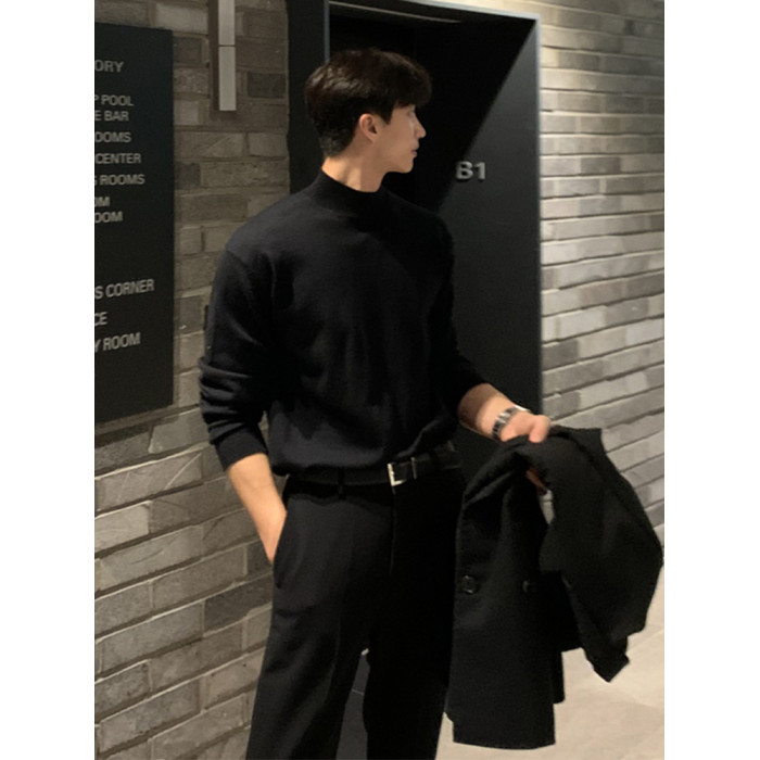 2025春秋季韓版潮流半高領針織衫毛衣男慵懶高級感中領寬松打底衫