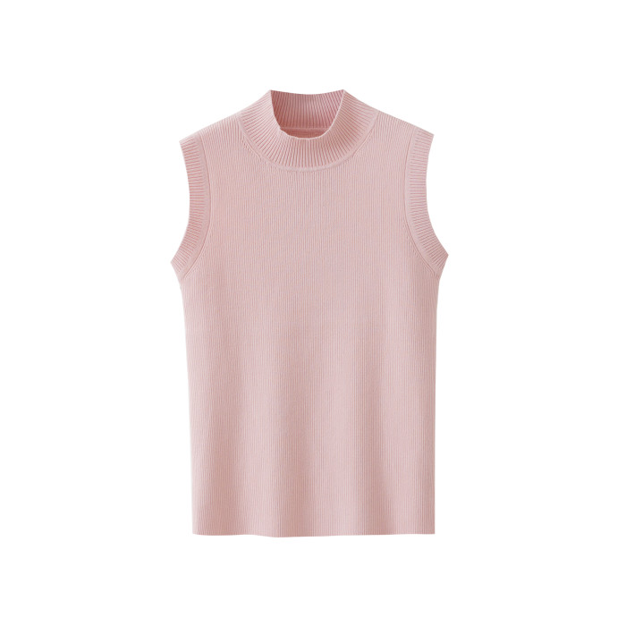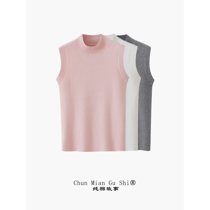 48S棉  純棉半高領針織背心女薄款內搭套頭無袖針織打底衫修身型