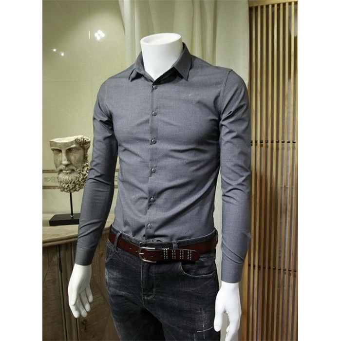 灰色韓版修身男襯衫長袖職業正裝襯衣寸衫商務休閒潮流帥氣打底衫