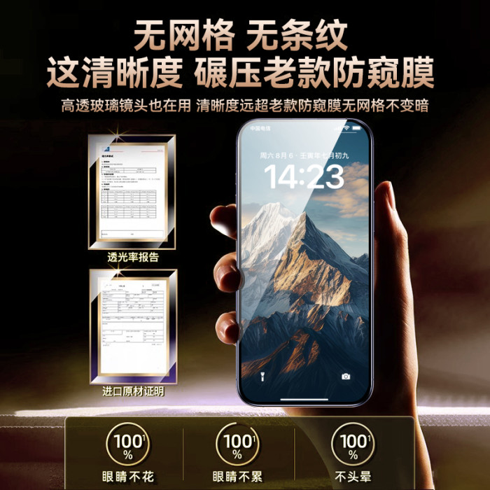 【25°防窺】4K防窺3套裝★康甯玻璃防爆★一拉除塵秒貼