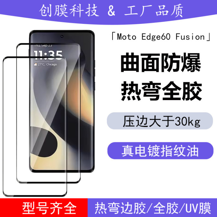 適用摩托羅拉moto Edge60Fusion鋼化膜60Pro邊膠全膠UV熱彎玻璃膜