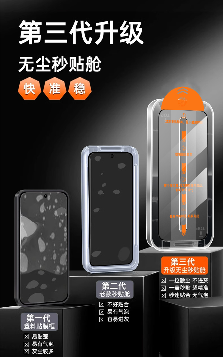 無塵倉秒貼膜【超清3片★原屏龍晶玻璃★超聲波秒解鎖】帶神器