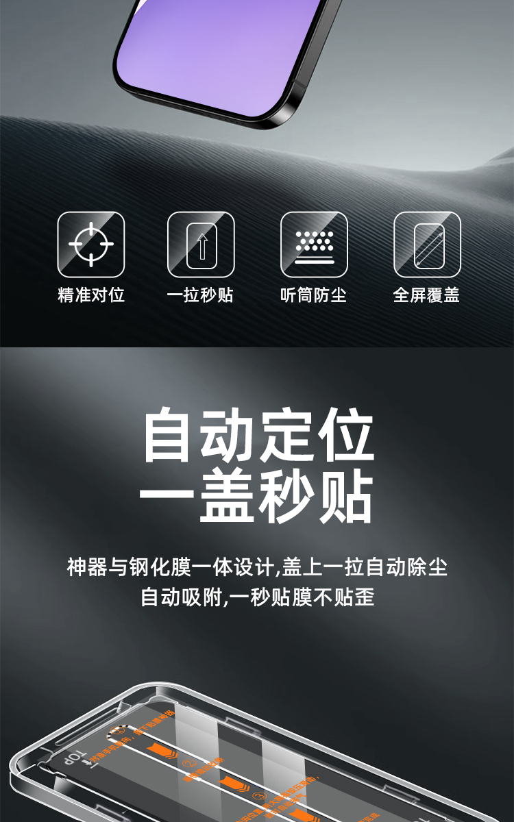 無塵倉秒貼膜【超清1片★原屏龍晶玻璃★超聲波秒解鎖】帶神器