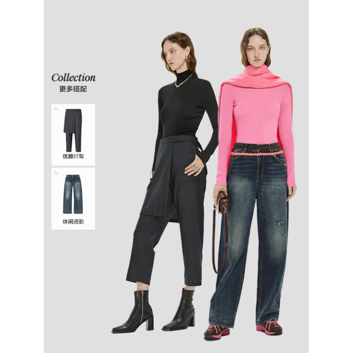 JNBY/江南布衣折釦秋冬舒適羊毛半高領針織衫修身打底衫純色女