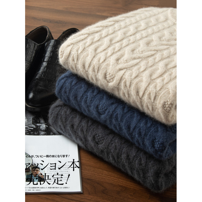 100%純山羊絨衫男半高領麻花扭花毛衣時尚商務休閒加厚保暖打底衫
