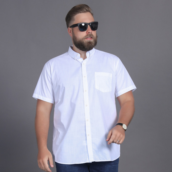 短袖襯衫男士加大碼夏裝薄款純色肥佬寬松男士打底衫胖子半袖襯衣
