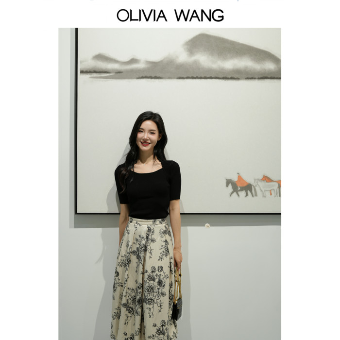 OLIVIA WANG 高級感赫本氣質修身短袖打底衫簡約純色針織衫內搭