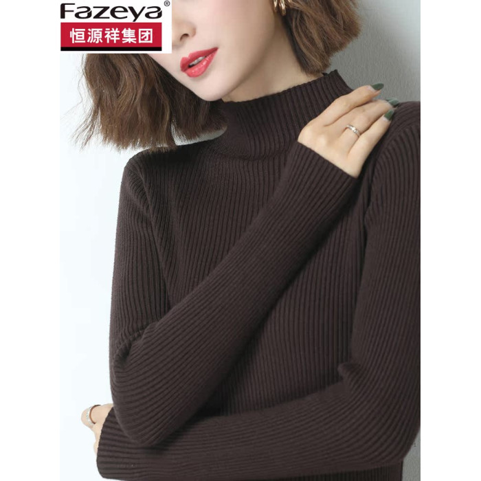 恒源祥彩羊羊毛衫女半高領秋冬新款針織毛衣內搭修身打底衫女上衣