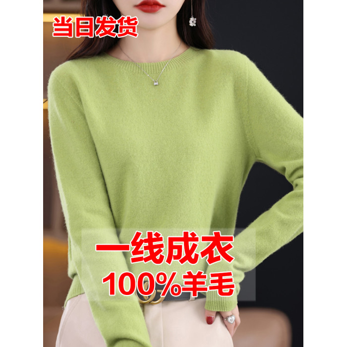 100%羊毛衫女士圓領加厚套頭毛衣羊絨針織打底衫寬松短款親膚保暖