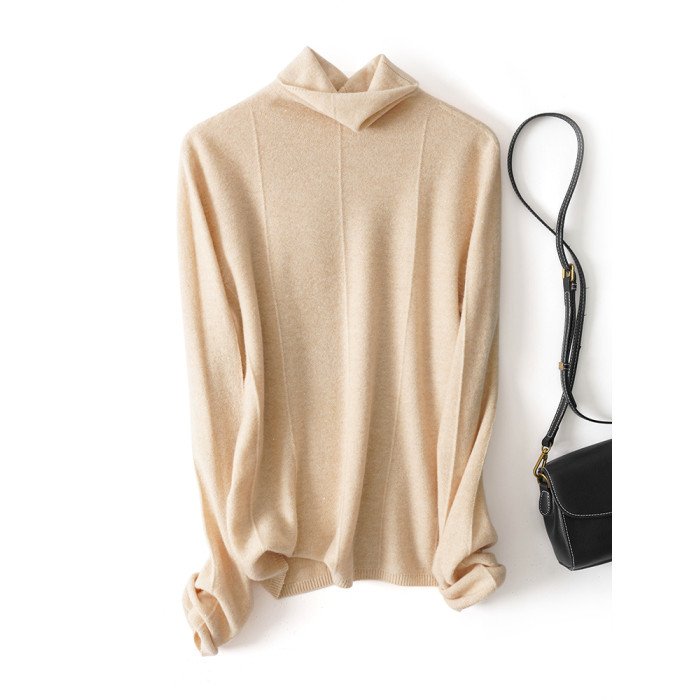 上身JU美 秋冬新款堆堆領無縫一體成衣亮絲針織衫綿羊毛打底衫女