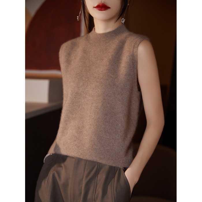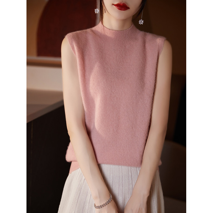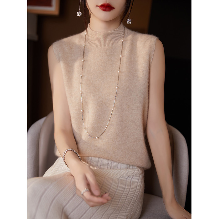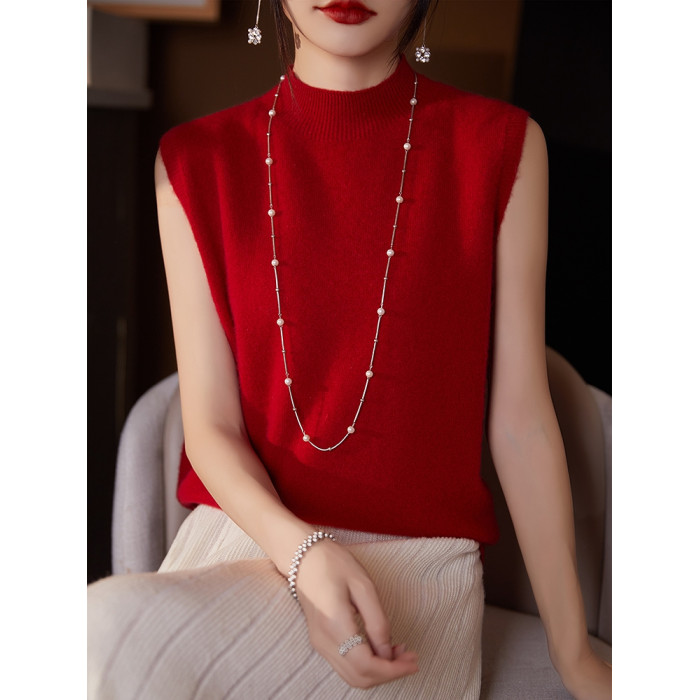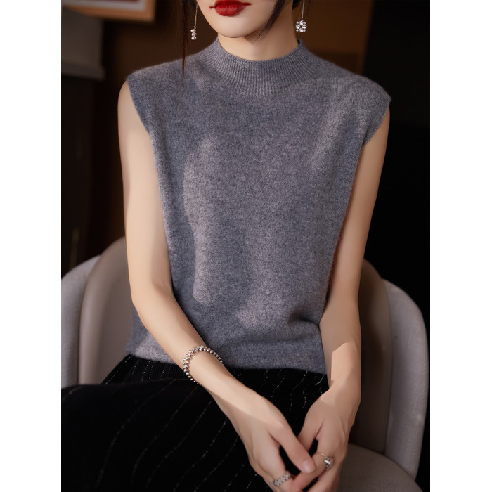 無縫一線100%純羊毛背心毛衣半高領吊帶針織打底衫秋季女羊絨內搭