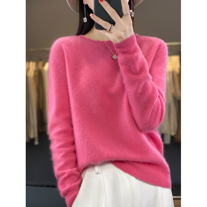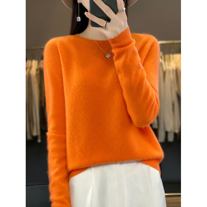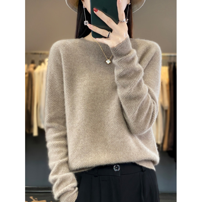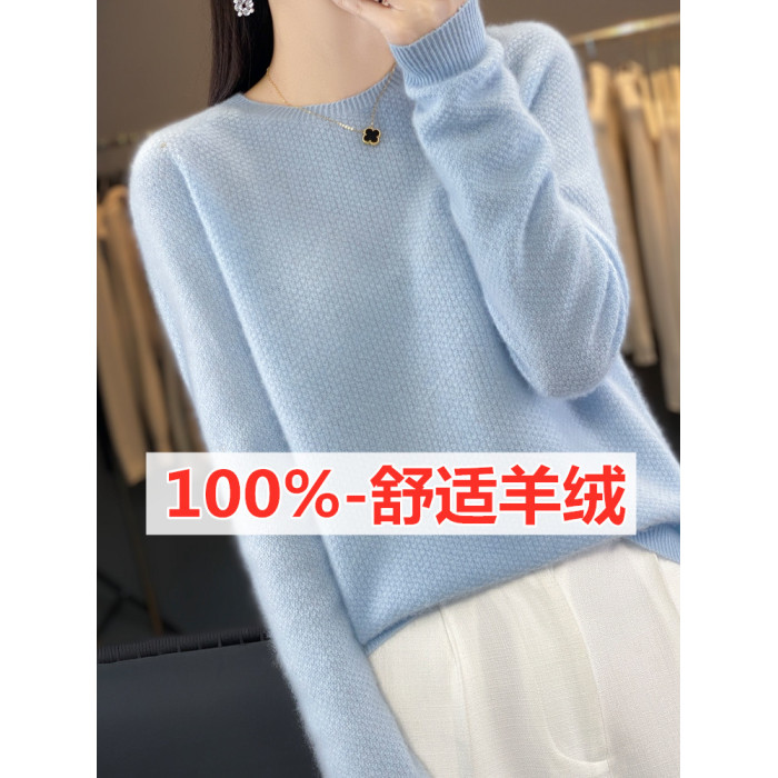 一線成衣100%純羊毛衫女圓領時尚長袖套頭羊絨毛衣秋冬針織打底衫