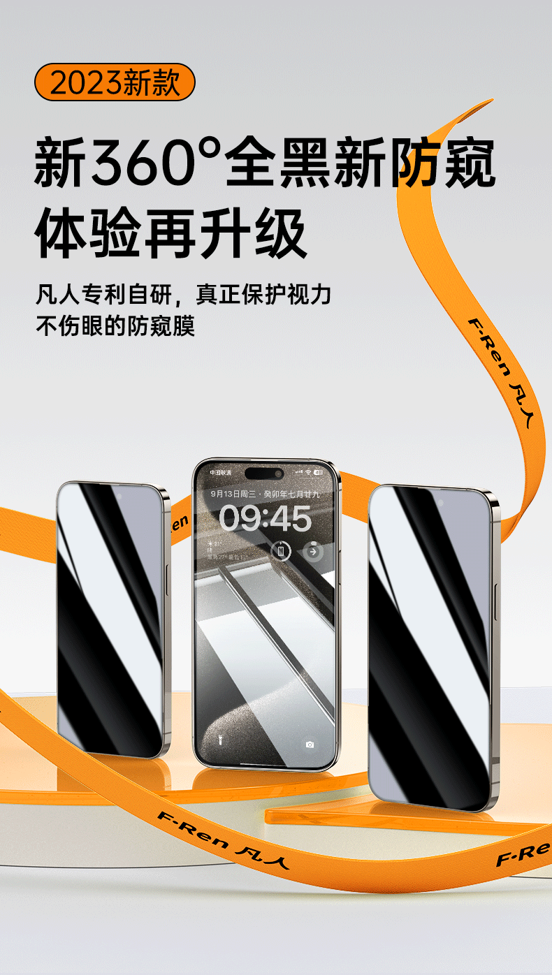 360度蘋果防窺膜適用蘋果16防窺鋼化膜iPhone14蘋果手機膜防媮窺3