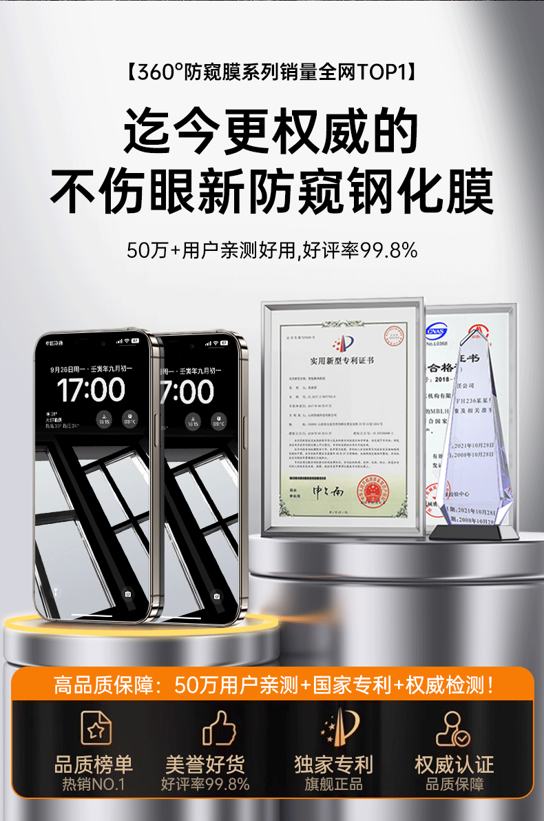 【360°新防窺升級款】上下左右防媮窺★增透不傷眼★全屏覆蓋-1片裝+神器